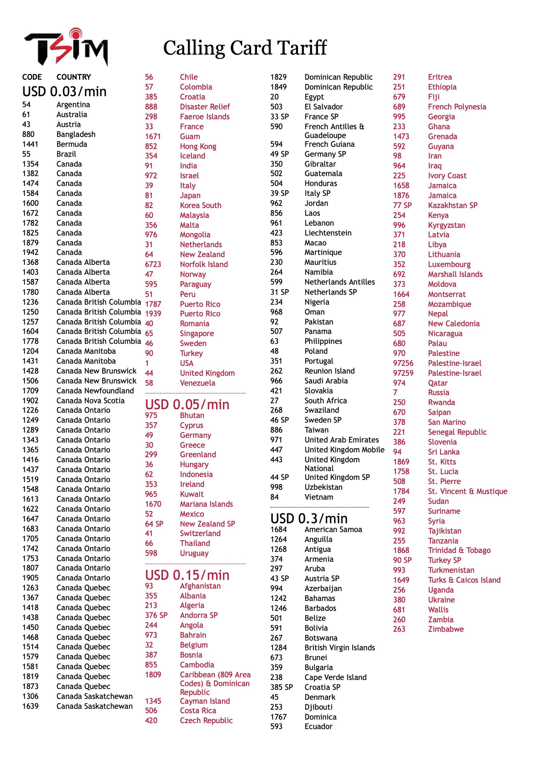 (Destination number must include the country code. Calls to USA/Canada must begin with 1)